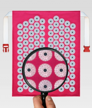 Acupress-M Magnetic Multifunctional Mat is a massage tool which combines acupressure and magnet therapy. It consists of a soft textile pad with a size of 43/55 cm. An array of plastic blossom elements, with built-in magnets, is securely attached on it.