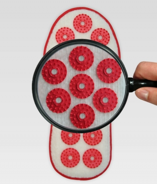 The plastic elements work mechanically on the acupuncture points of the feet, thus improving blood circulation, restoring normal energy flow in the body, and bringing balance to the functions of organs and systems.