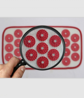 Place the pad on the area of your body you wish to massage - head, neck, palm, spine, joint or pinna. You could lie on it or massage the zone using your palms by applying a slight pressure combined with circular motion. Until you get used to the blossom elements, we recommend that you use the case we provide or perform the massage through a layer of clothing. For maximum effect, however, direct contact with the skin is recommended. The massage pressure should be at the upper limit of comfort zone, based on your preference. Initially you will feel a slight prick for a few minutes, which will gradually give way to a pleasant warm sensation. The warmth is a result of an increased blood flow to the area.